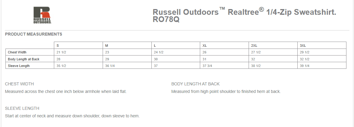 Russell Outdoors Quarter Zip Product Description
